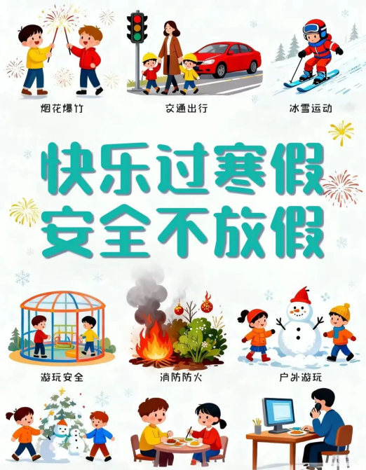 寒假已至,为确保大家度过一个平安、健康、愉快的假期,就相关安全事项提示如下: