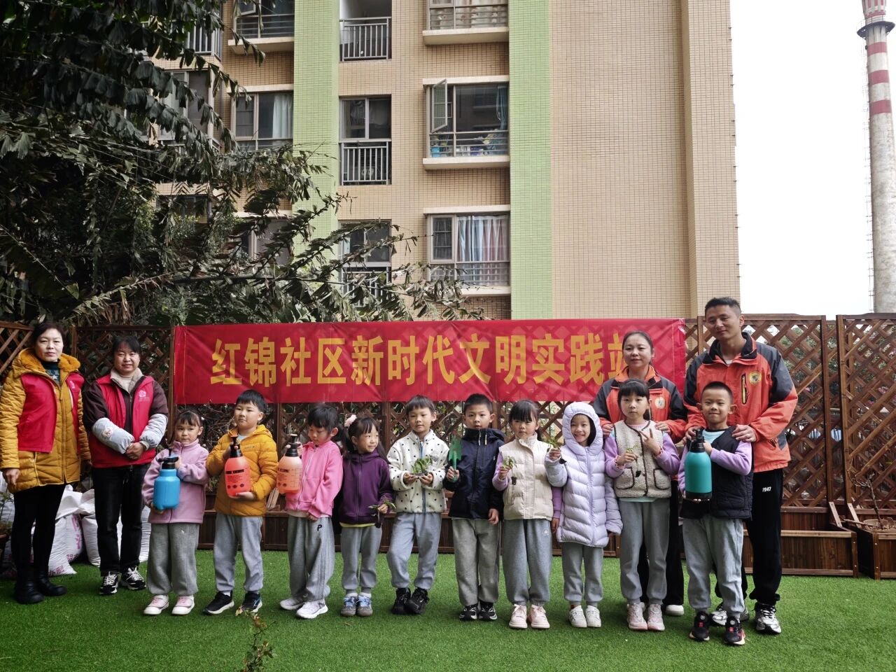 3月12日,红锦社区联合辖区宝乐顺幼儿园,在社区露台开展“植一抹新绿,树一片希望”植树节主题活动,幼儿园师生、社区志愿者共同参与,以童心播撒绿意,用行动美化家园。